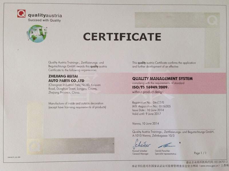 質(zhì)量管理體系認(rèn)證證書(shū)14年